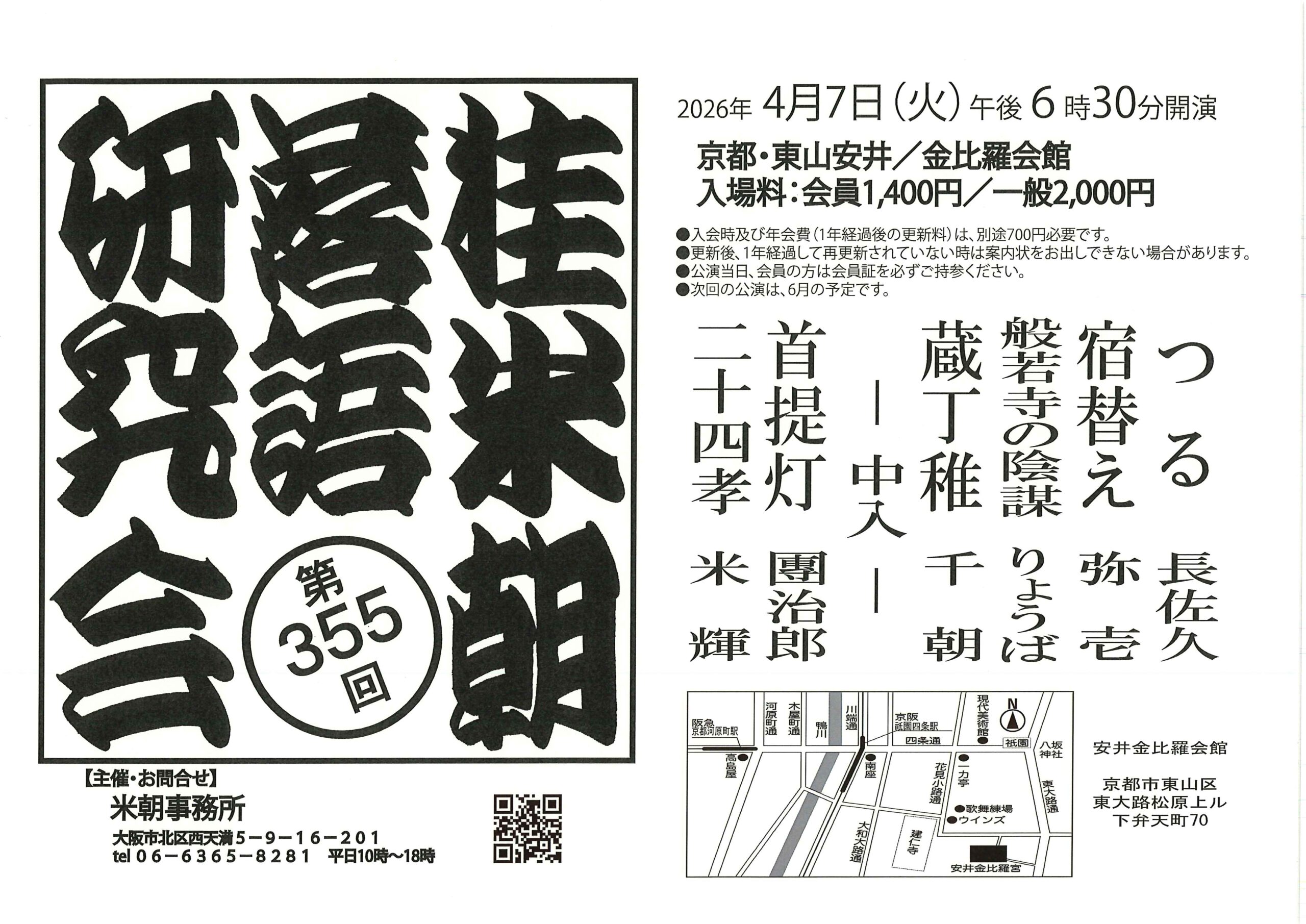 第355回 桂米朝落語研究会/東山安井金比羅宮/2026.4.7