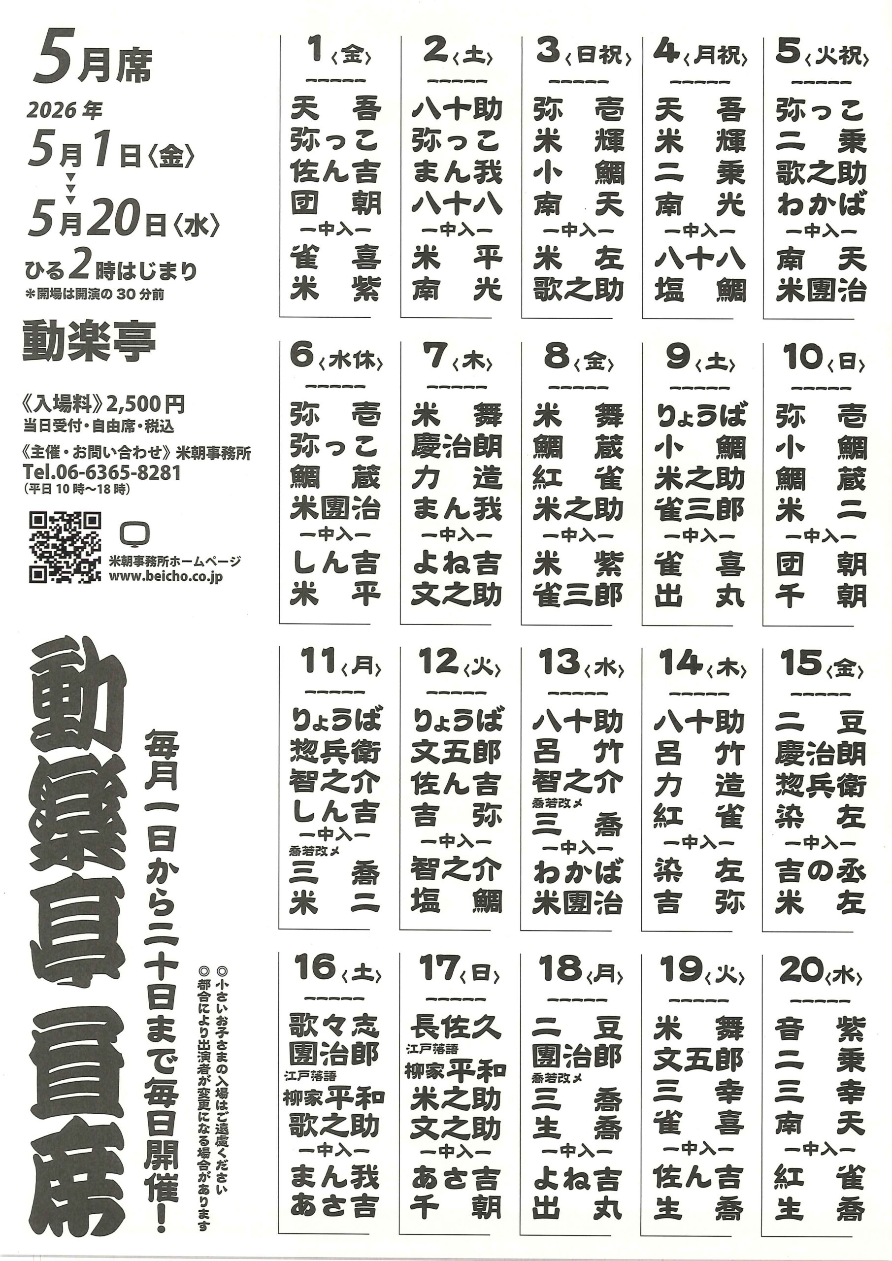 米朝事務所の出演者情報