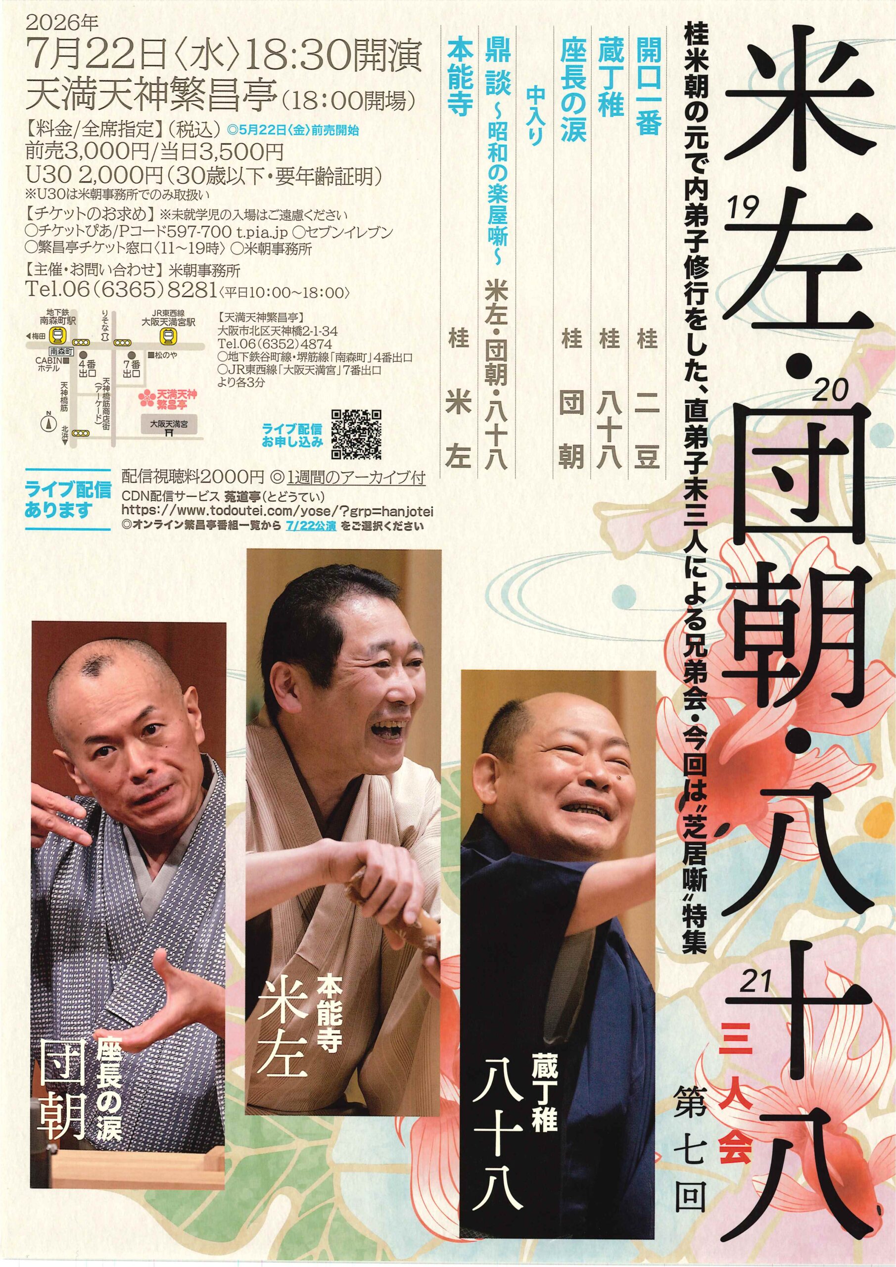 米左・団朝・八十八三人会/天満天神繁昌亭/2026.7.22